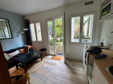 Une pièce avec coin nuit, une cuisine / salle à manger, une salle de bains, un espace dressing, une cave privative de 12m2, un jardin exposé Sud en pleine propriété.