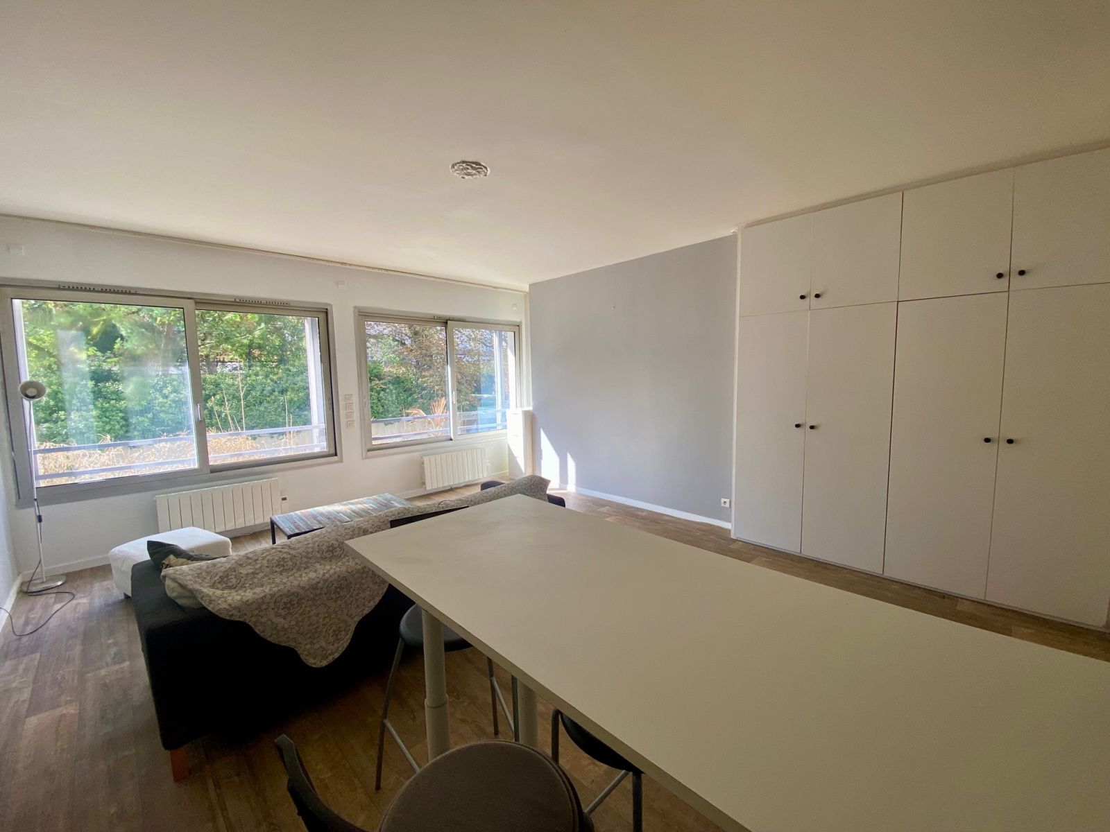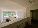Une entrée, une grande pièce de vie, une cuisine semi-ouverte, une chambre avec penderies, une salle de bains et un WC.