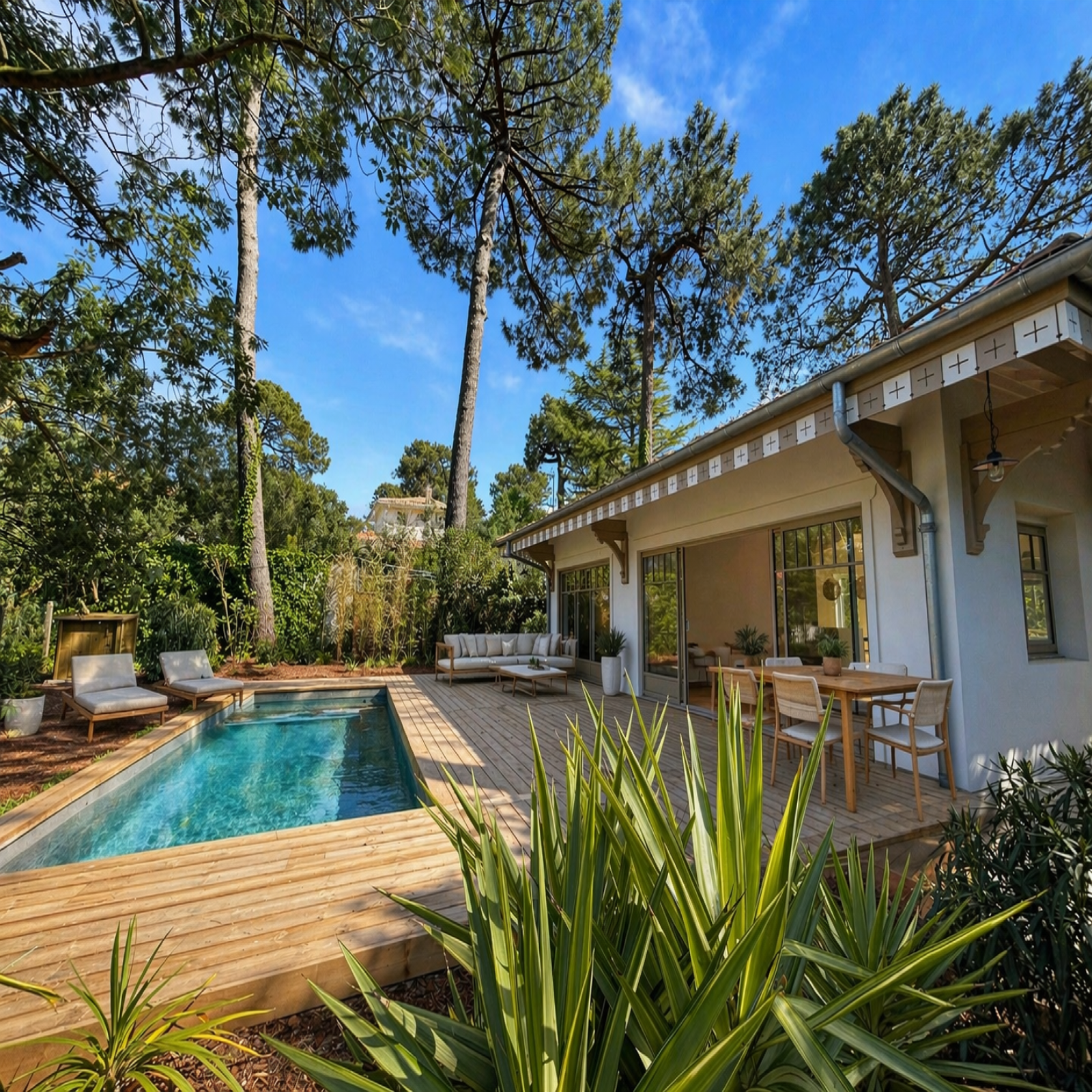 Dans le très recherché secteur des Abatilles à Arcachon, découvrez cette magnifique villa entièrement rénovée et repensée par un architecte, alliant élégance, confort et prestations actuelles.