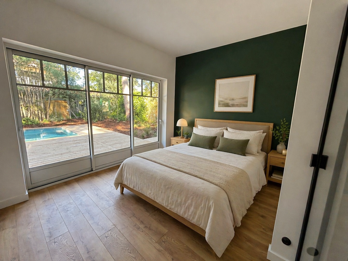 En rez-de-jardin, un dégagement dessert 3 chambres, 2 salles d’eau, un WC et une buanderie, offrant une organisation confortable et fonctionnelle pour la vie de famille ou l’accueil des invités.
