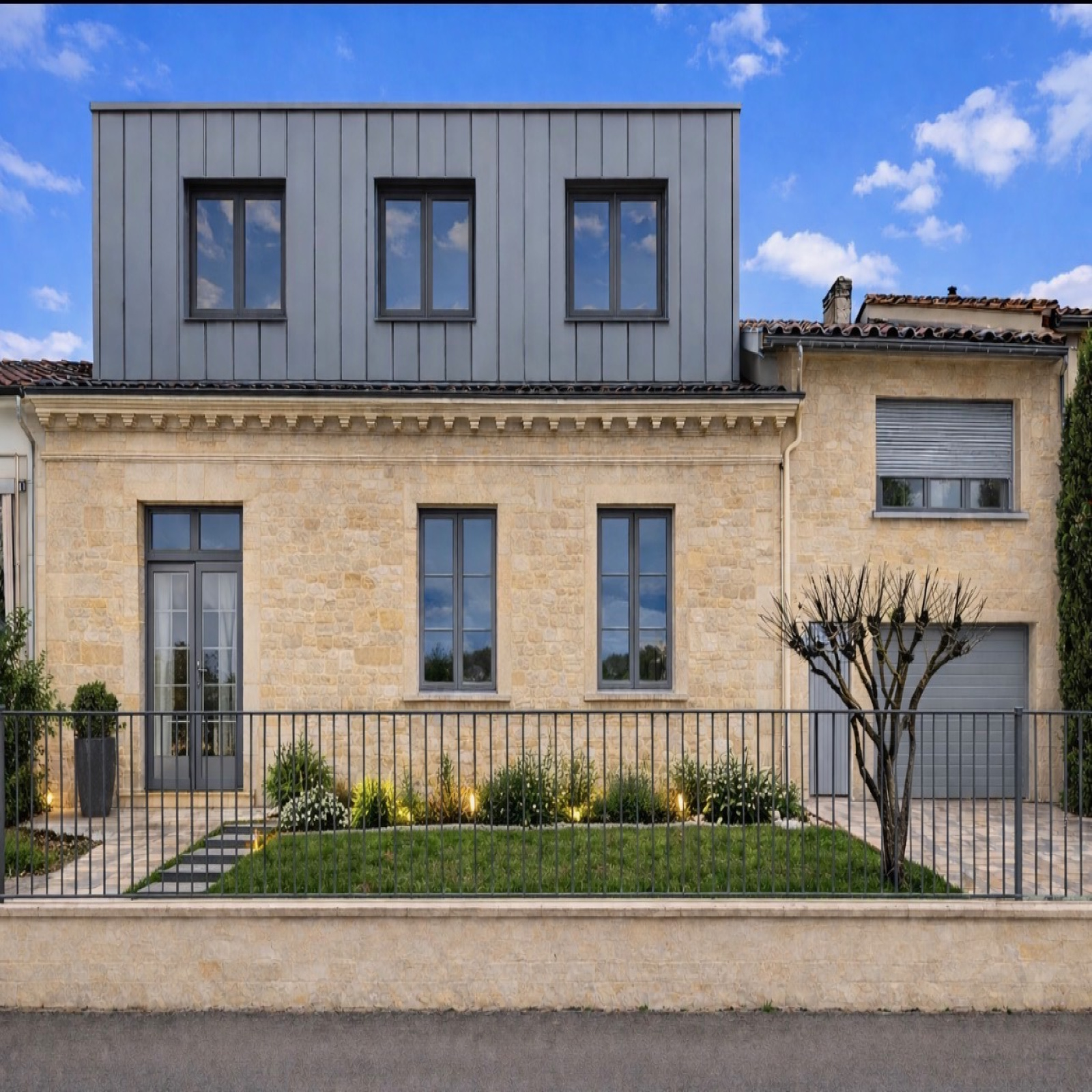 La première photo est une projection réalisée par intelligence artificielle, proposée à titre d’illustration après rénovation.